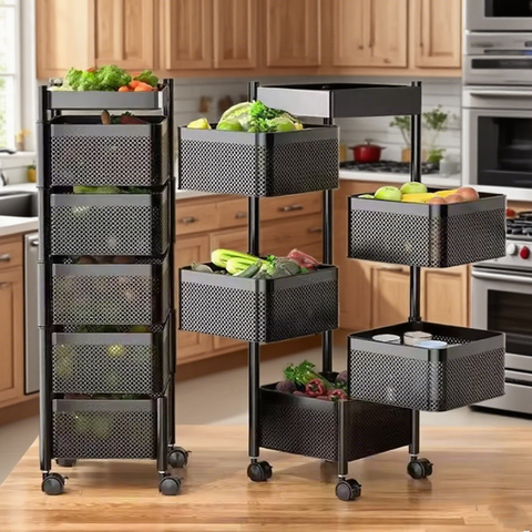 Movable armazenamento Rack Rotary Metal Household armazenamento Rack para Fruitsvegetables Snacks e outros itens